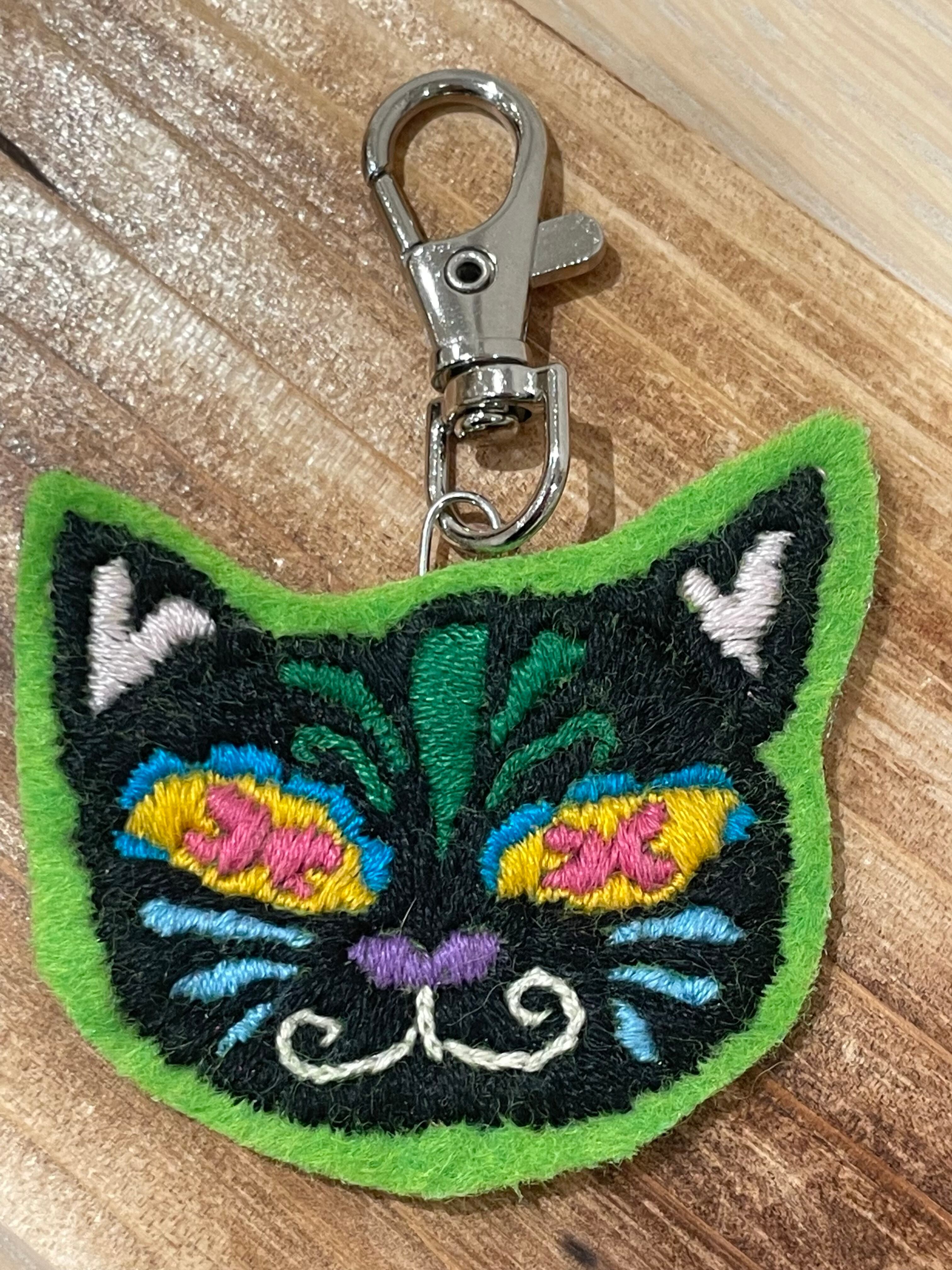 大人気の手刺繍のカラベラ柄の猫キーホルダーです♪