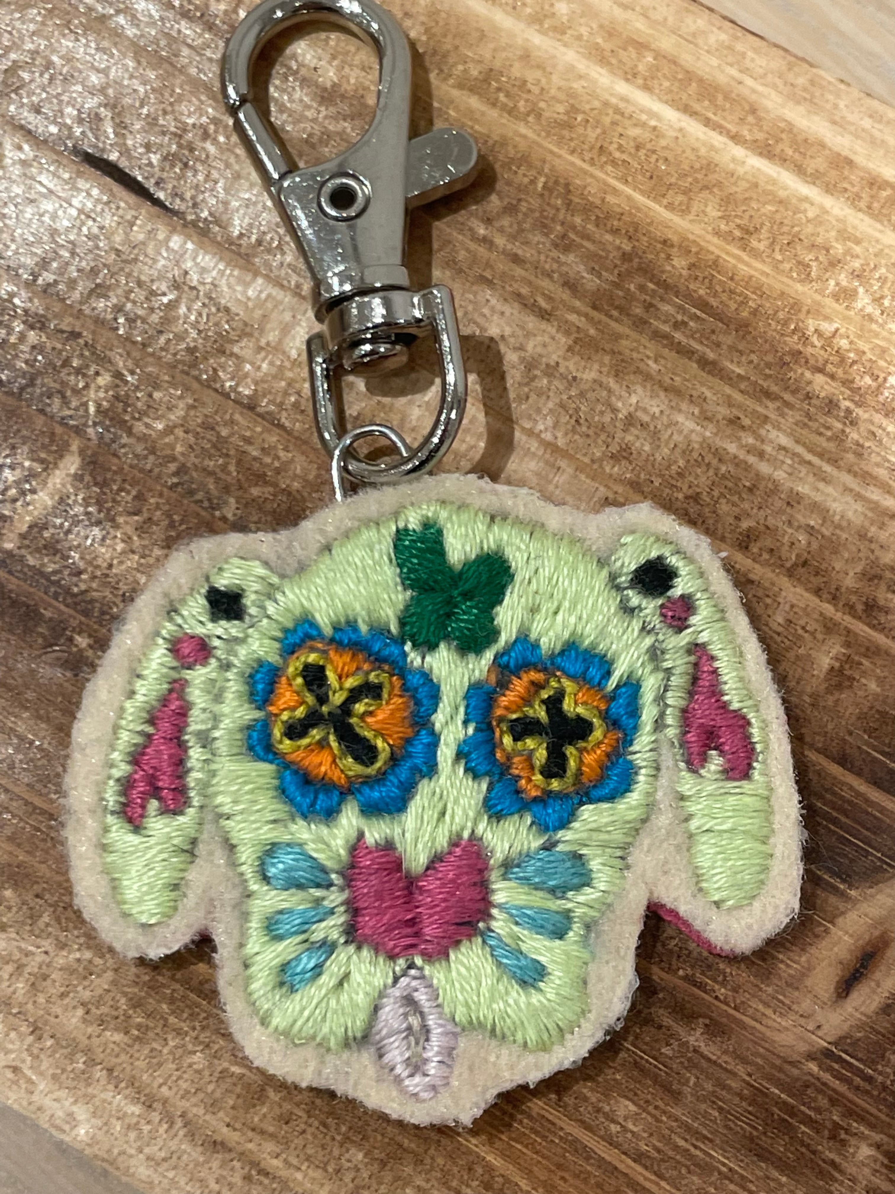 手刺繍のカラベラ柄ワンちゃんキーホルダーです♪