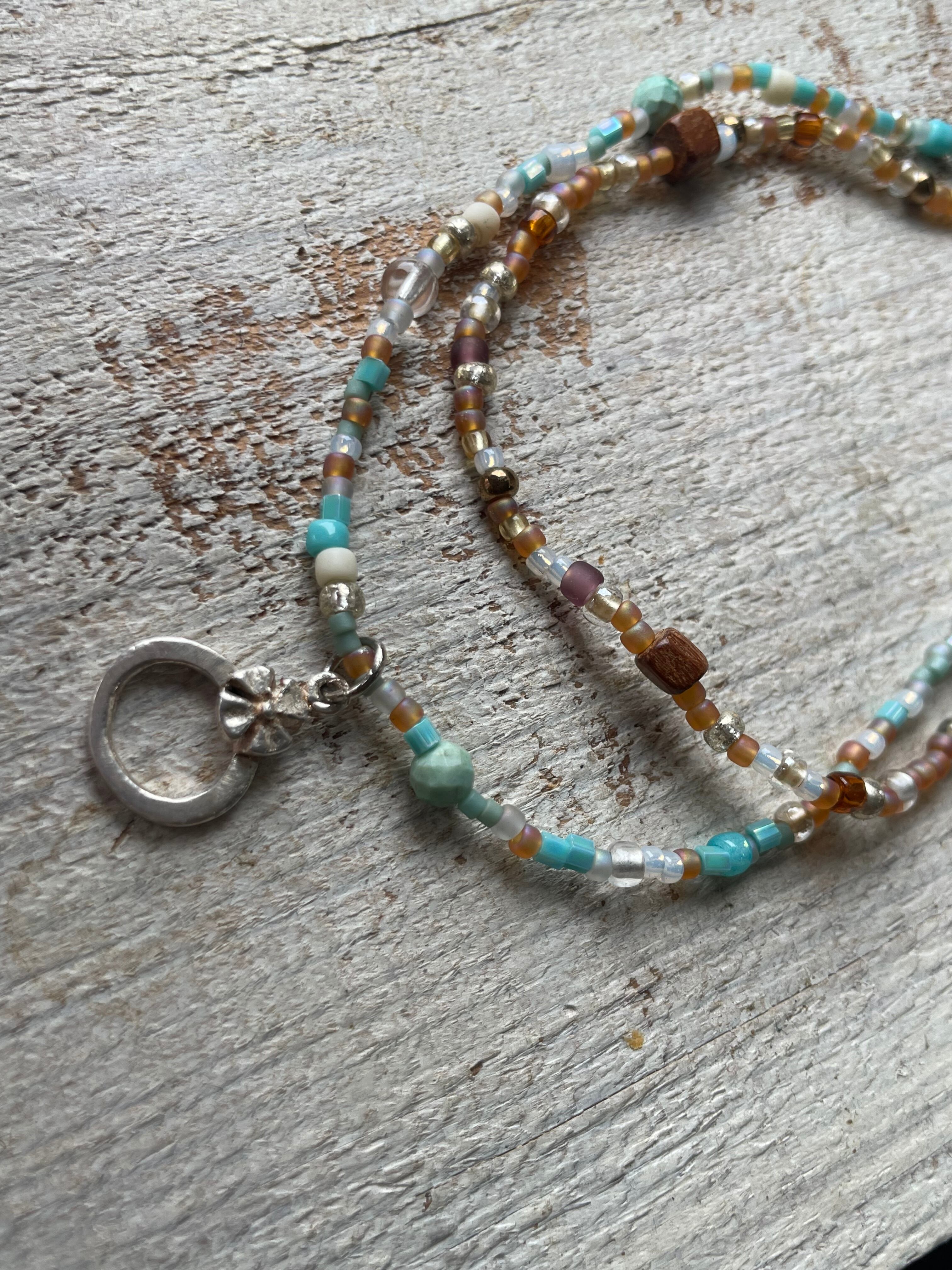 デッドストックビーズと天然ターコイズ、天然水晶を使用しています♪